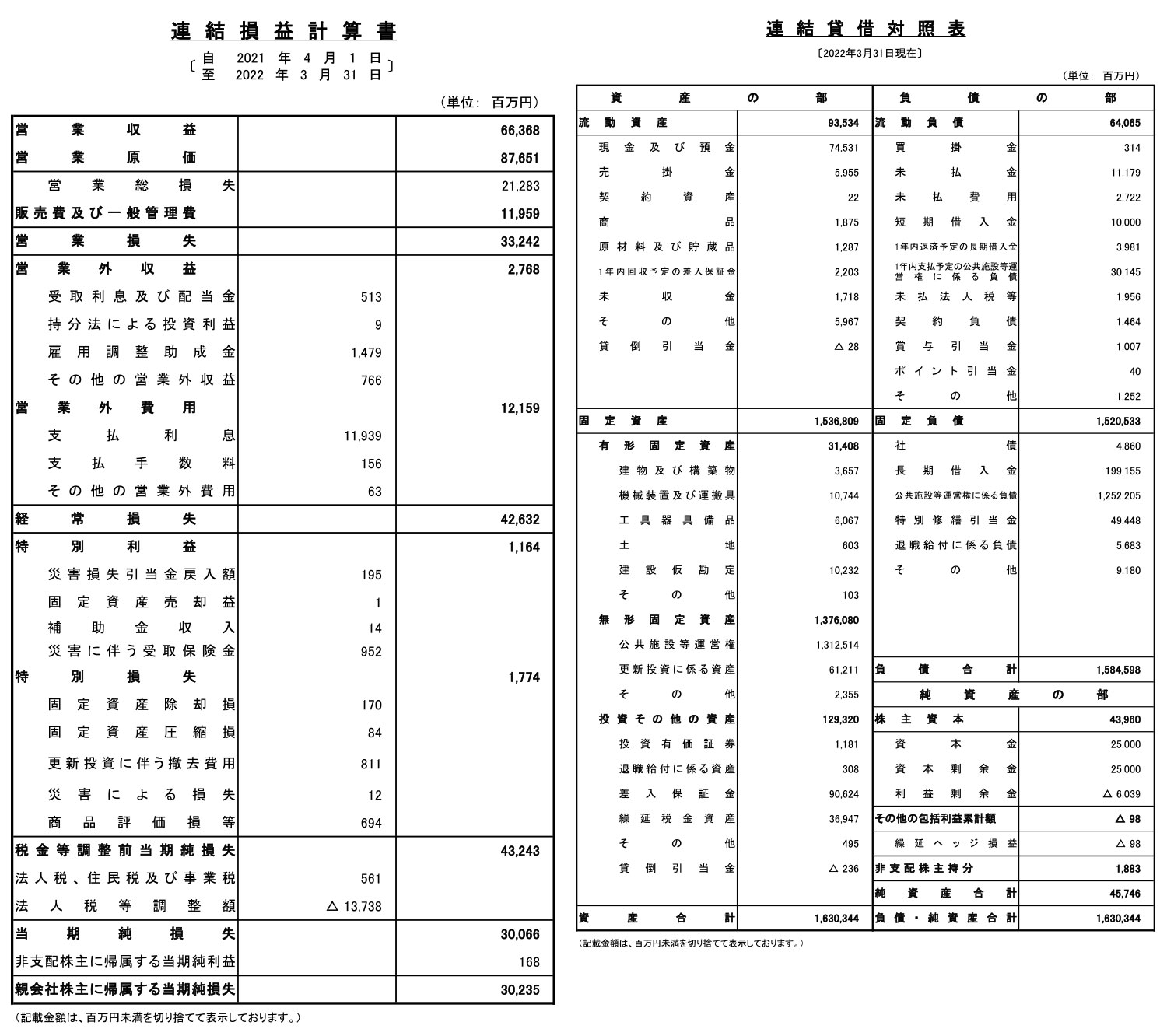 | 2022年03月31日 | 7期 | 663億6800万円 | ▲300億6600万円 | ▲60億3900万円 | 1兆6303億4400万円 |