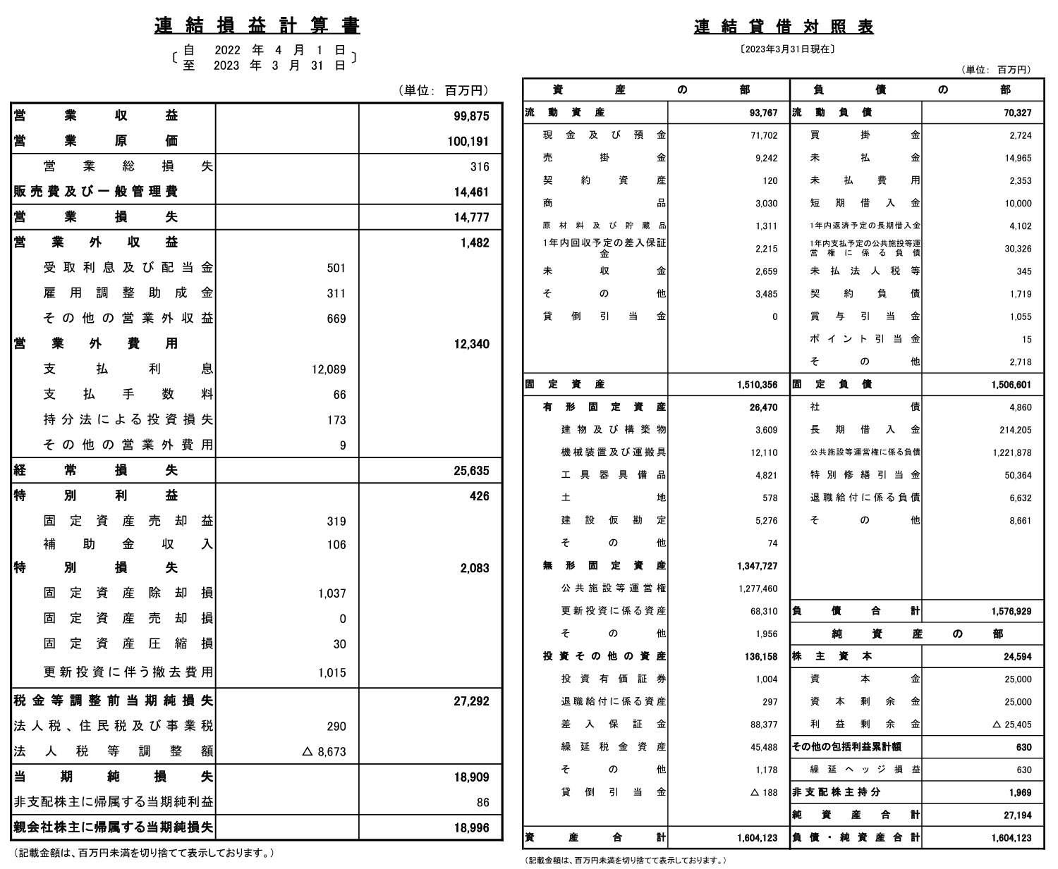 | 2023年03月31日 | 8期 | 998億7500万円 | ▲189億900万円 | ▲254億500万円 | 1兆6041億2300万円 |