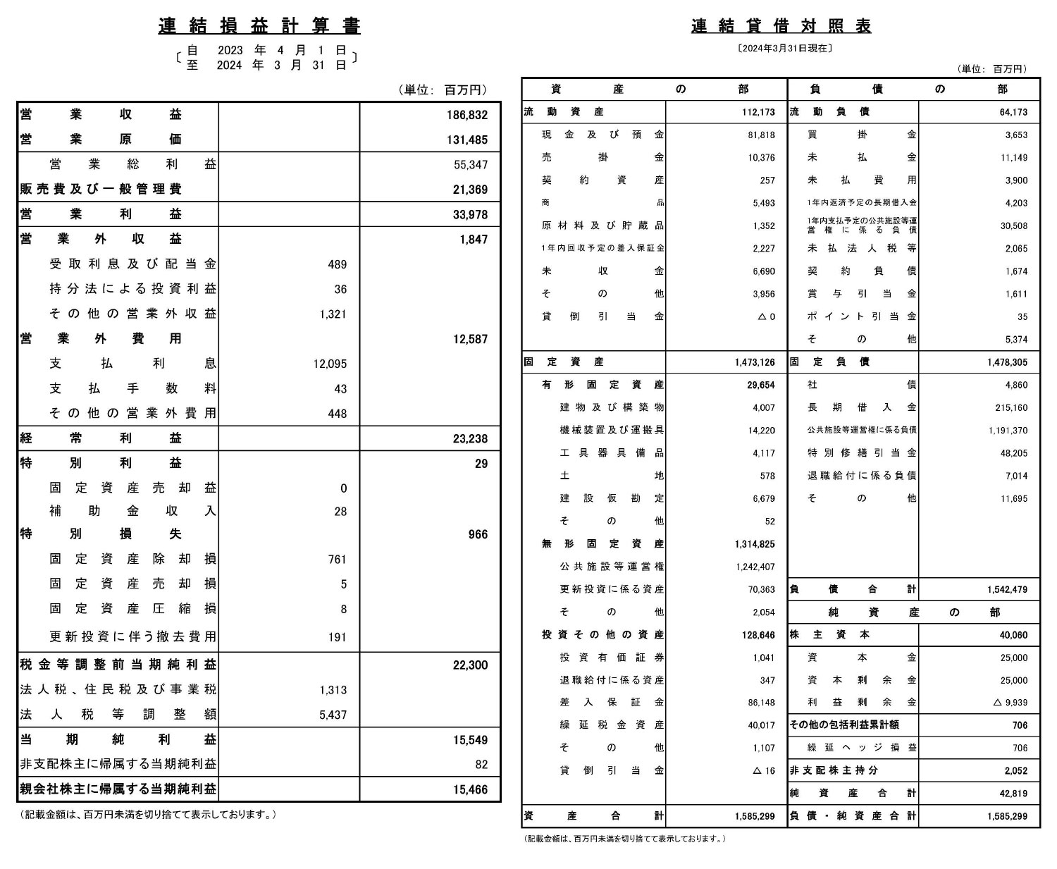 | 2024年03月31日 | 9期 | 1868億3200万円 | 155億4900万円 | ▲99億3900万円 | 1兆5852億9900万円 |