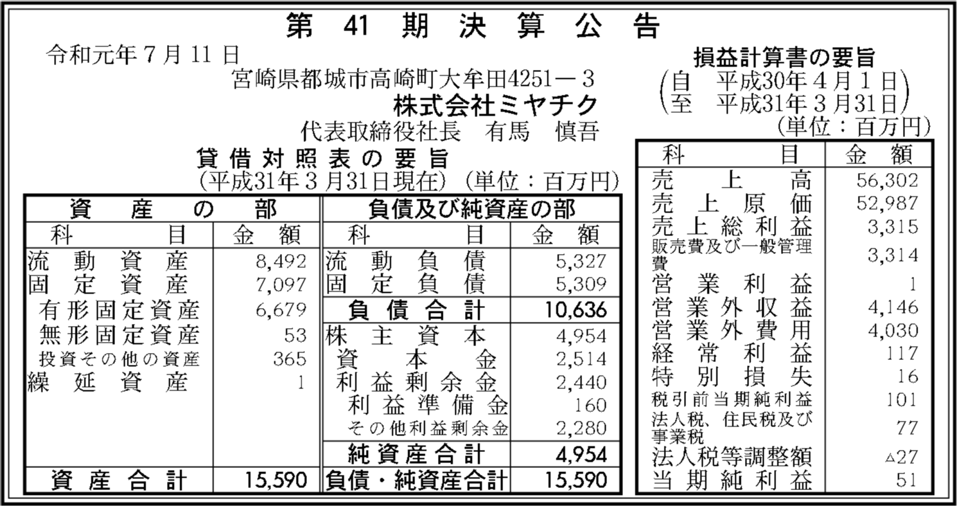 | 2019年03月31日 | 41期 | 563億200万円 | 5,100万円 | 24億4,000万円 | 155億9,000万円 |