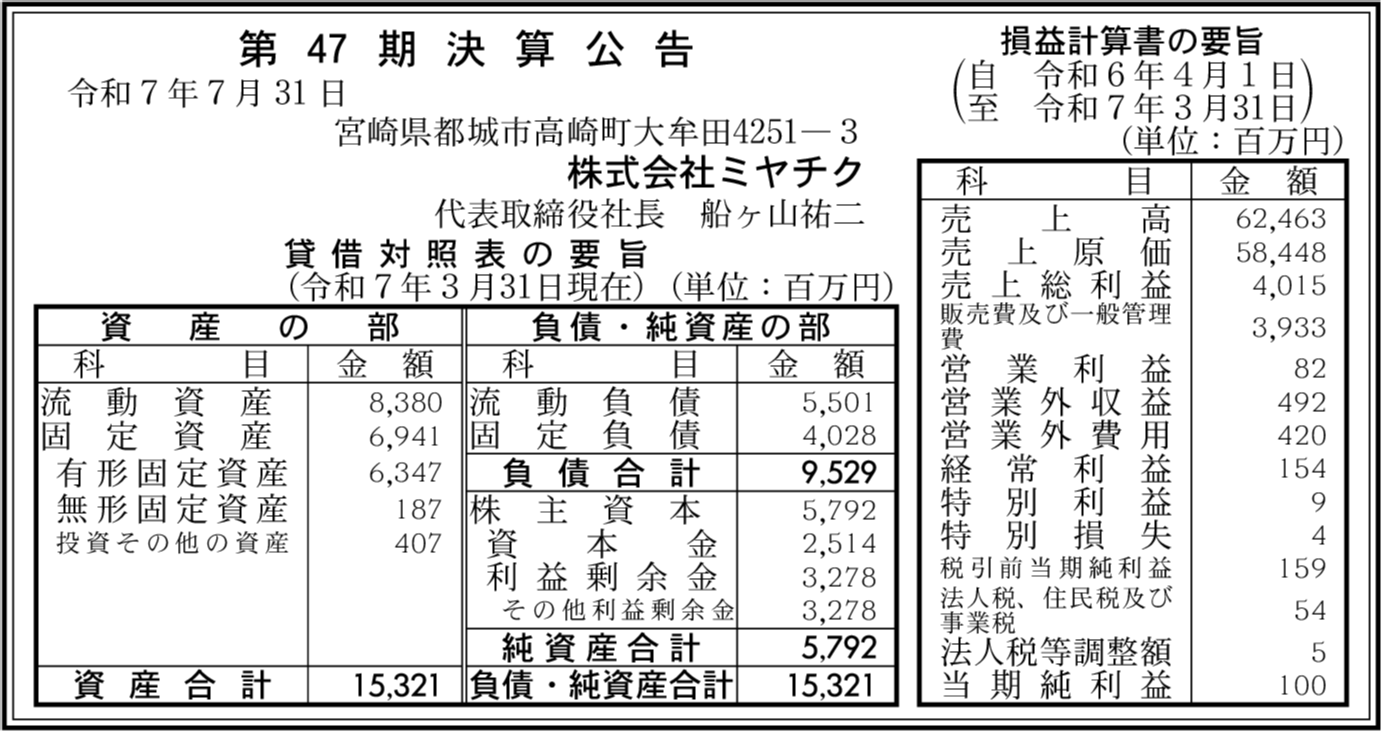 | 2025年03月31日 | 47期 | 624億6,300万円 | 1億円 | 32億7,800万円 | 153億2,100万円 |
