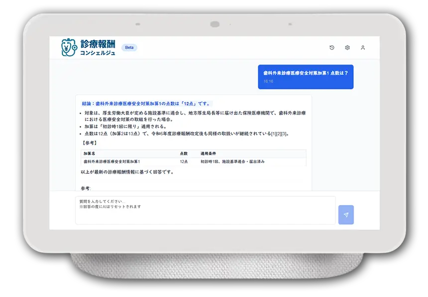 「診療報酬コンシェルジュ」は、厚生労働省通知やPMDA(医薬品医療機器総合機構)の情報など、信頼性の高い一次資料をリアルタイムで検索し、正確な回答を提供します。これにより、従来の手作業や分厚い参考書に依存せず、迅速かつ正確に保険請求に関する問題を解決できます。